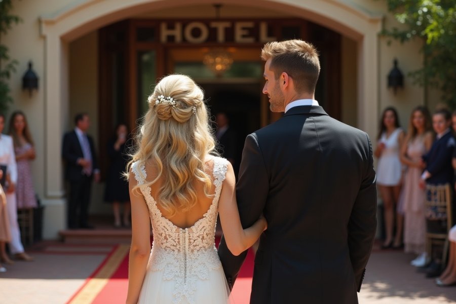 Hääparille hääpäivän aamu on lempeä, kun juhlavaatteet ja kaikki tarvittava on jo paikan päällä. Henkilökunta on varmistanut, että juhlatila on toiveiden mukainen. Hotellille tilattua kampaajaa ja meikkaajaa odotellessa ehtii nauttia muiden valmistaman herkullisen aamiaisen keskustellen päivän tärkeistä asioista hotellilla yöpyvien läheisten kanssa. Myöhemmin pukeutumiselle on mukavat tilat ja hotellihuoneessa on usein ilmastointi. Jos hotellissa on huonepalvelu, nesteytys ja pienet herkut tuovat valmistautumiseen luksusta. Sitten onkin jo aika juhlia.